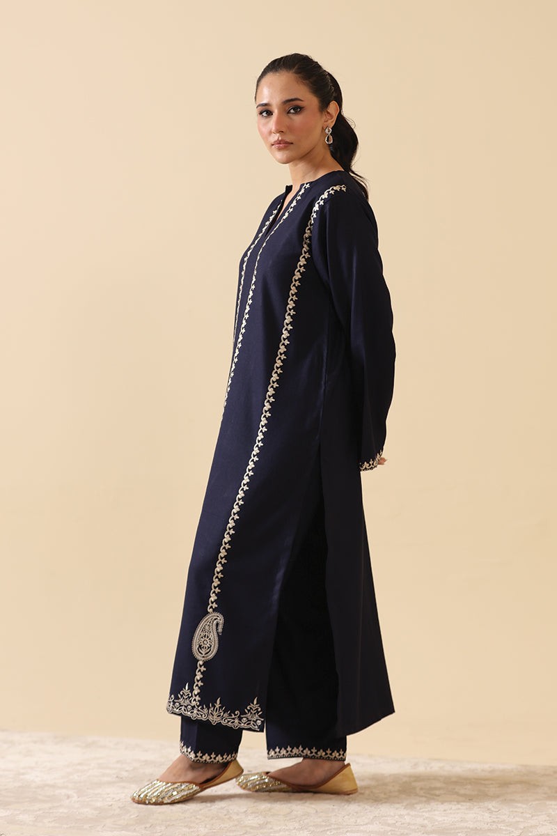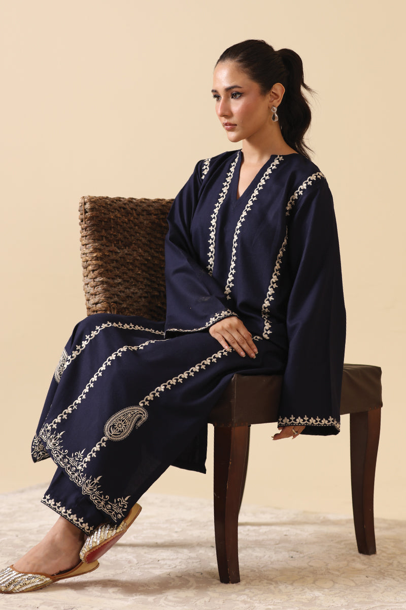 - Embroidery details on sleeves and trouser
